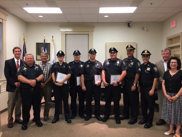 On Aug. 22, members of the Board of Selectmen recognized Sgt. Jonathan Gray, Detective Shane Kavanagh, Officer William Carney, Reserve Officer Lawrence Nestor and Reserve Officer Mia Cefalo for helping to save a life.
