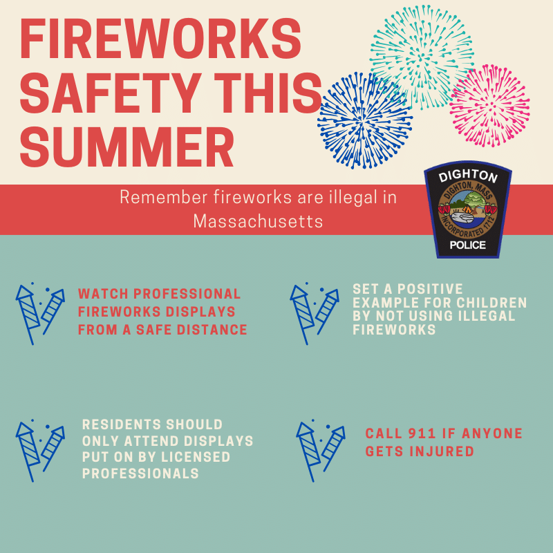 DIGHTON — As the Fourth of July and summer celebrations approach, Chief Robert L. MacDonald and the Dighton Police Department would like to remind residents that the use of fireworks is illegal in Massachusetts.