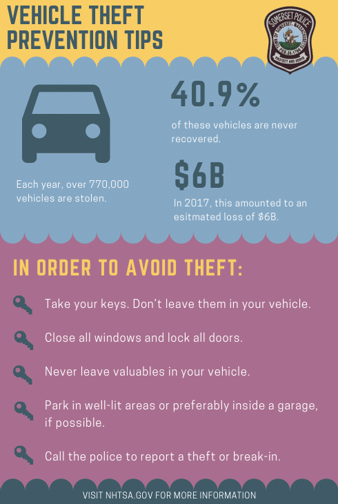SOMERSET — Chief George McNeil and the Somerset Police Department would like to advise residents to properly secure their vehicles to prevent break-ins and avoid being easy targets for thieves this season.