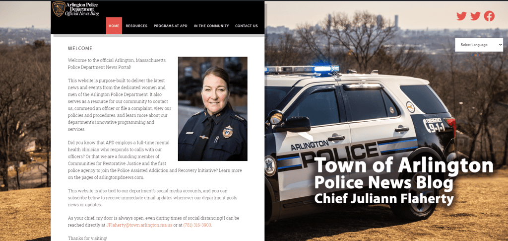 subscribe to receive news from the department automatically via email. It is also integrated into the department’s social media channels and will automatically broadcast news blog content onto the Arlington Police Department Twitter feed.