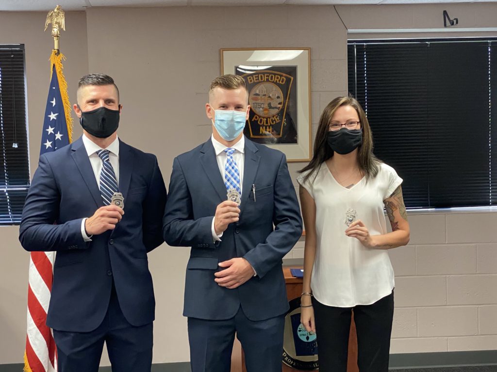 BEDFORD N.H. — Chief John J. Bryfonski is pleased to announce the three newest members of the Bedford Police Department have been sworn in.