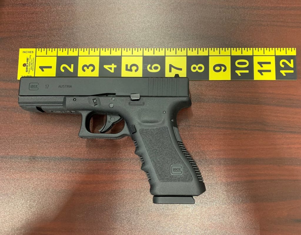 A Glock 17 model BB gun, which looks similar to a real Glock 17, was located in the vehicle and seized.