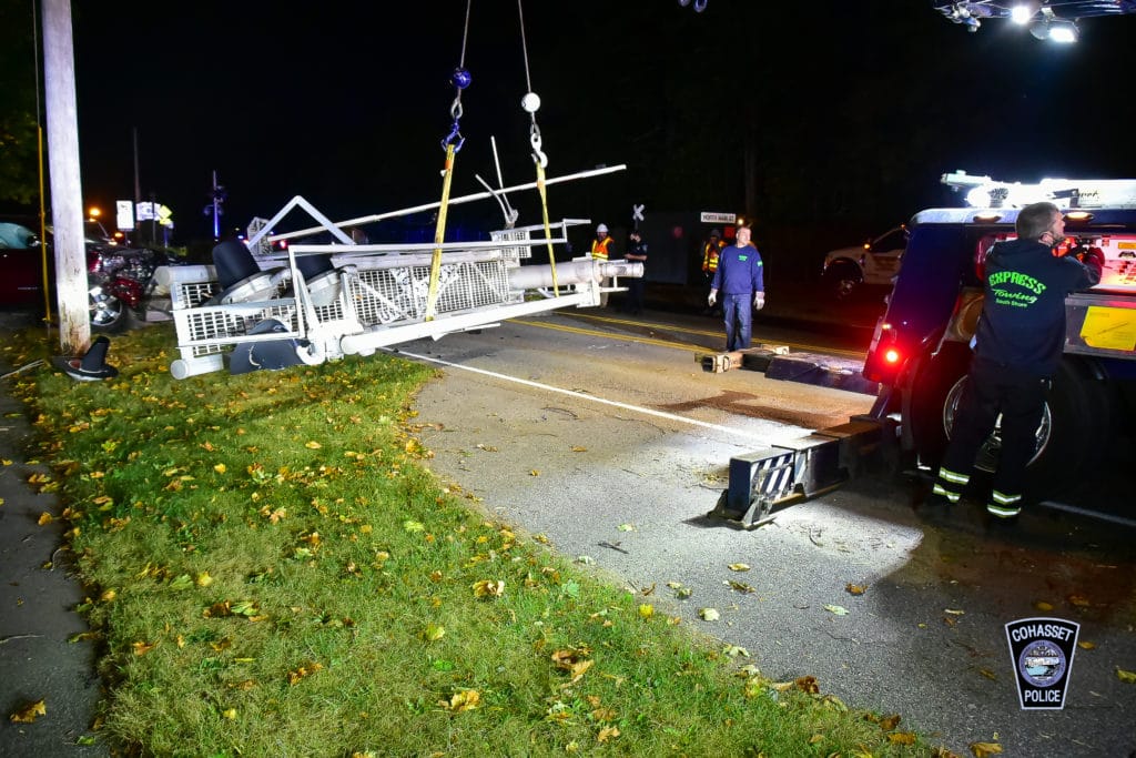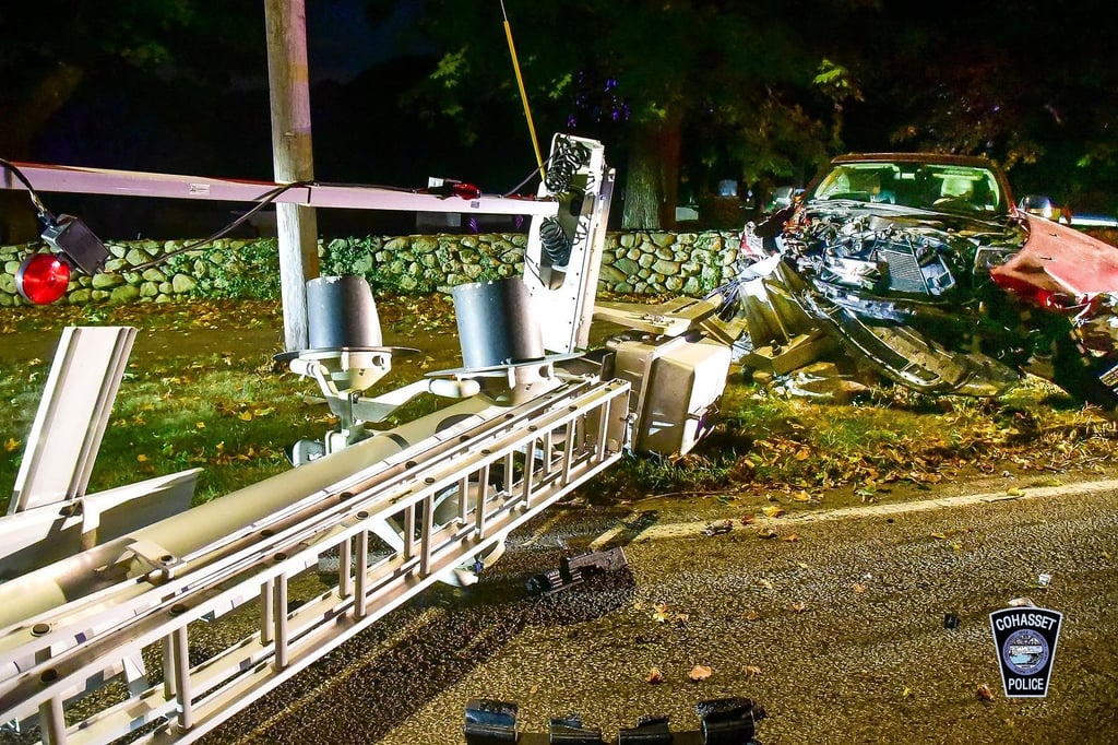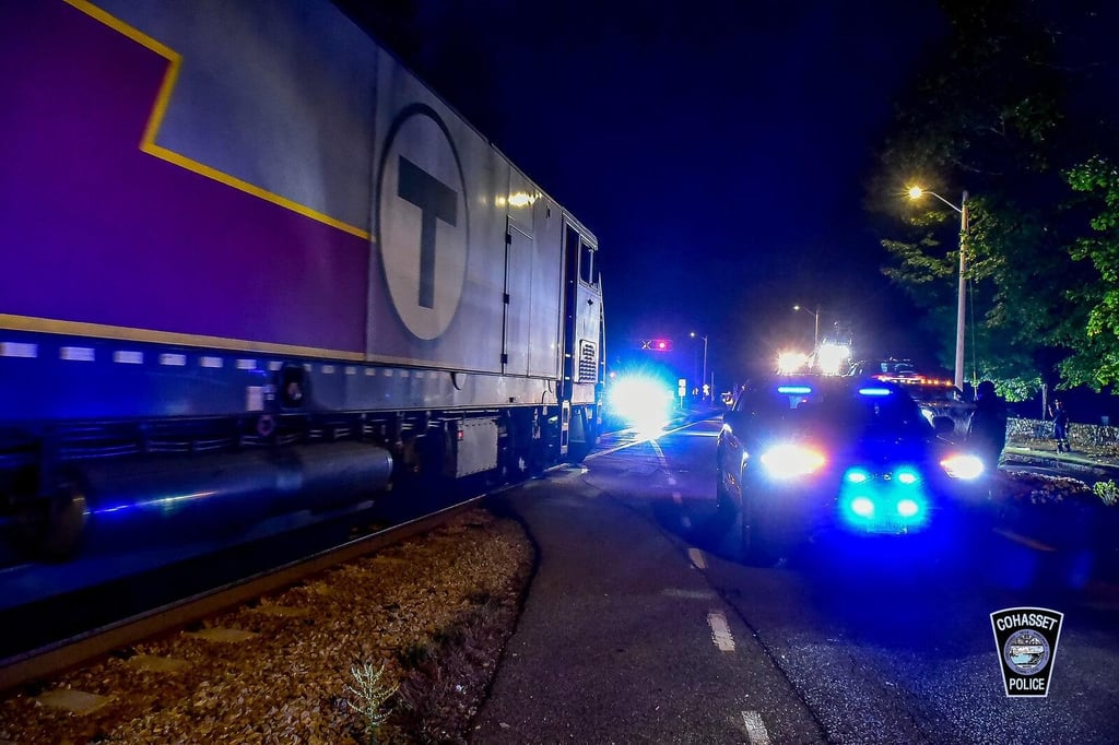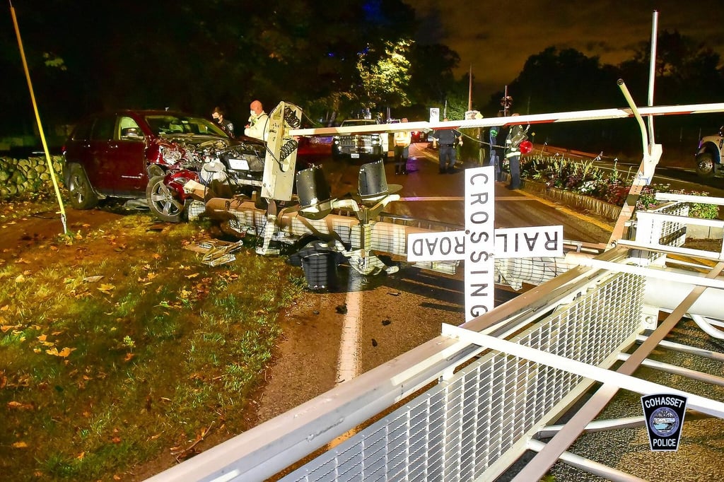 At approximately 10 p.m. on Saturday, Oct. 3, Cohasset Police and Fire responded to a report of a motor vehicle crash on North Main Street at the MBTA Commuter Rail crossing near Cohasset Station on the Greenbush Line.