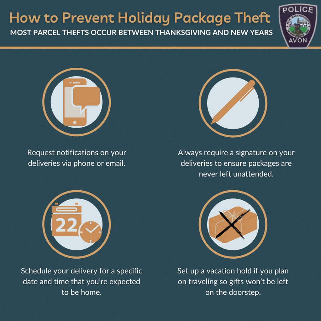 - If you find your package has been stolen, immediately report it to Avon Police