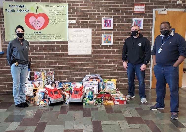 The donations, paired with donations from residents to the Randolph Police Toys for Tots drive, allowed the department to donate toys, clothes and other essential items to dozens of families between all of the schools in the Randolph Public Schools. The items were distributed by officers to the various schools in the district on Monday, Dec. 21.