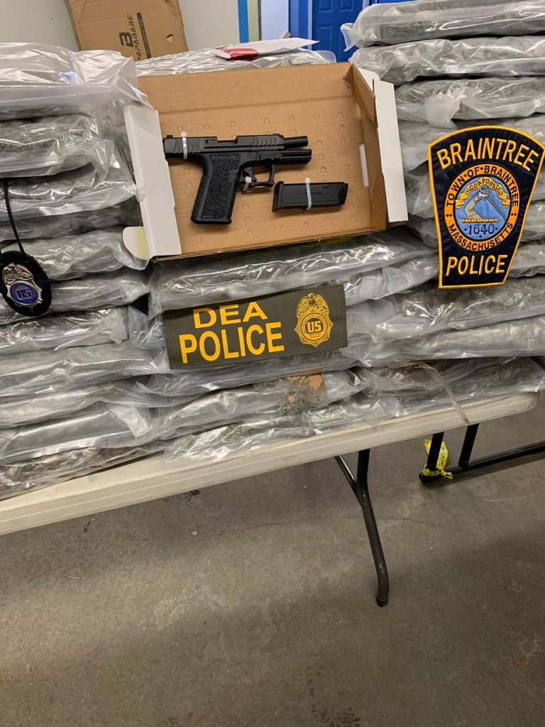 “This was fantastic police work all the way around by our officers and those who assisted, and now there are 300 pounds of marijuana off the streets along with an unlawfully possessed firearm,” Chief Dubois said. “Narcotics dealing and distribution of any kind will not be tolerated in Braintree and we will deploy as many resources as we have at our disposal to keep drug dealers out of our community.”