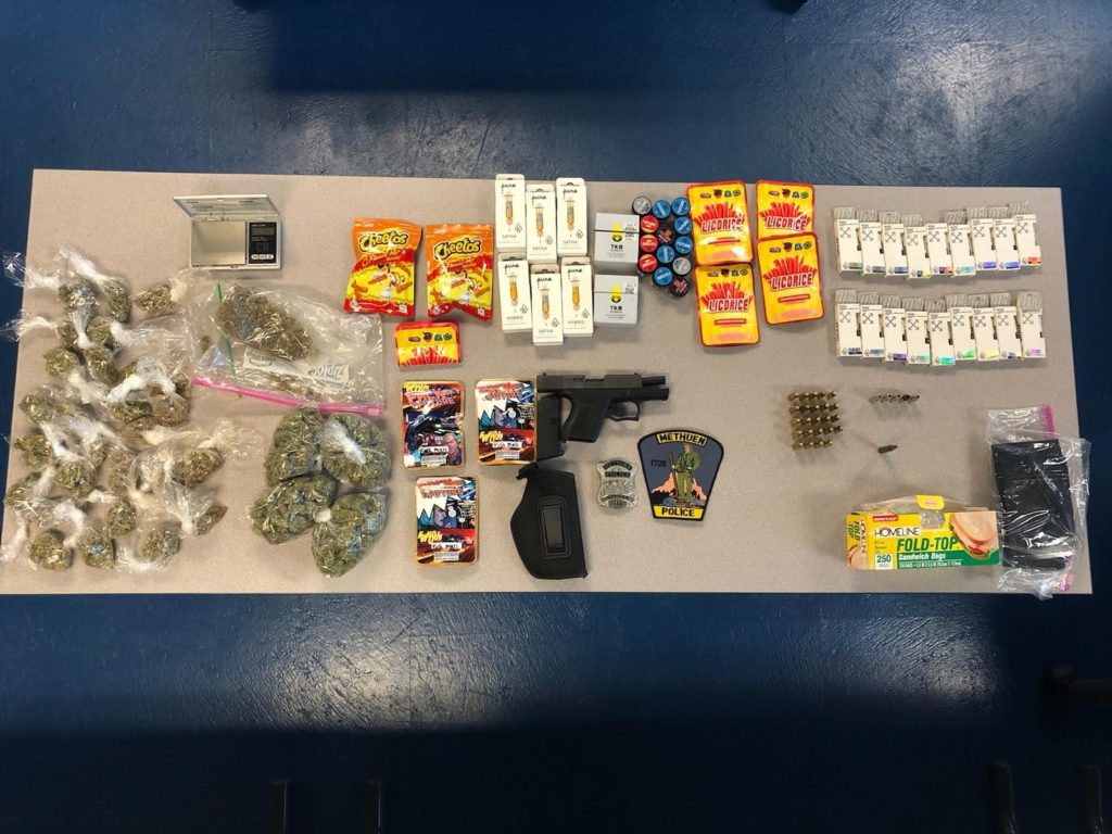 Additionally, Methuen Police located marijuana packaged for sale, a scale, sandwich bags and black vinyl material bags, which are typically used for distribution of narcotics, THC vape cartridges, extracts and oils, marijuana edibles and 24 additional 9 mm bullets and one .223 caliber bullets.
