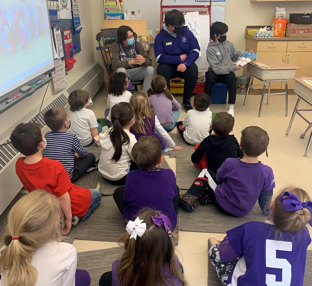 Members of both the boys and girls hockey teams visited 15 different classrooms at BES on Thursday, Dec. 3 to meet and read to students in grades Pre-K to 2. Teachers of specialist classes such as STEAM and visual art also welcomed the student-athletes to read to the younger grades.