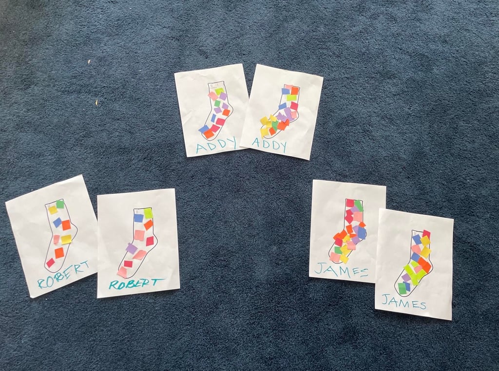 At the elementary level, students worked on a special sock project with preschoolers that involved cutting shapes and pasting them onto socks to work on fine motor skills. Library volunteers also read books to classes to raise awareness for Down syndrome.