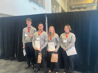 The THS management team, comprised of juniors Jonathon Henderson, Tatum Doman, Israel Cruz and Kaia Leonard, received second place out of the five management teams for their innovative digital restaurant concept, 0Atmosphere.