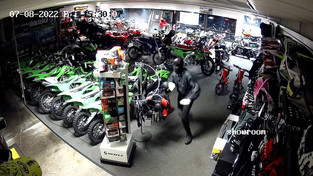 Through a subsequent investigation, police determined that two motorbikes had been stolen from the store. Police believe that six male suspects were involved in the incident, five of whom fled the scene prior to the officer’s arrival.