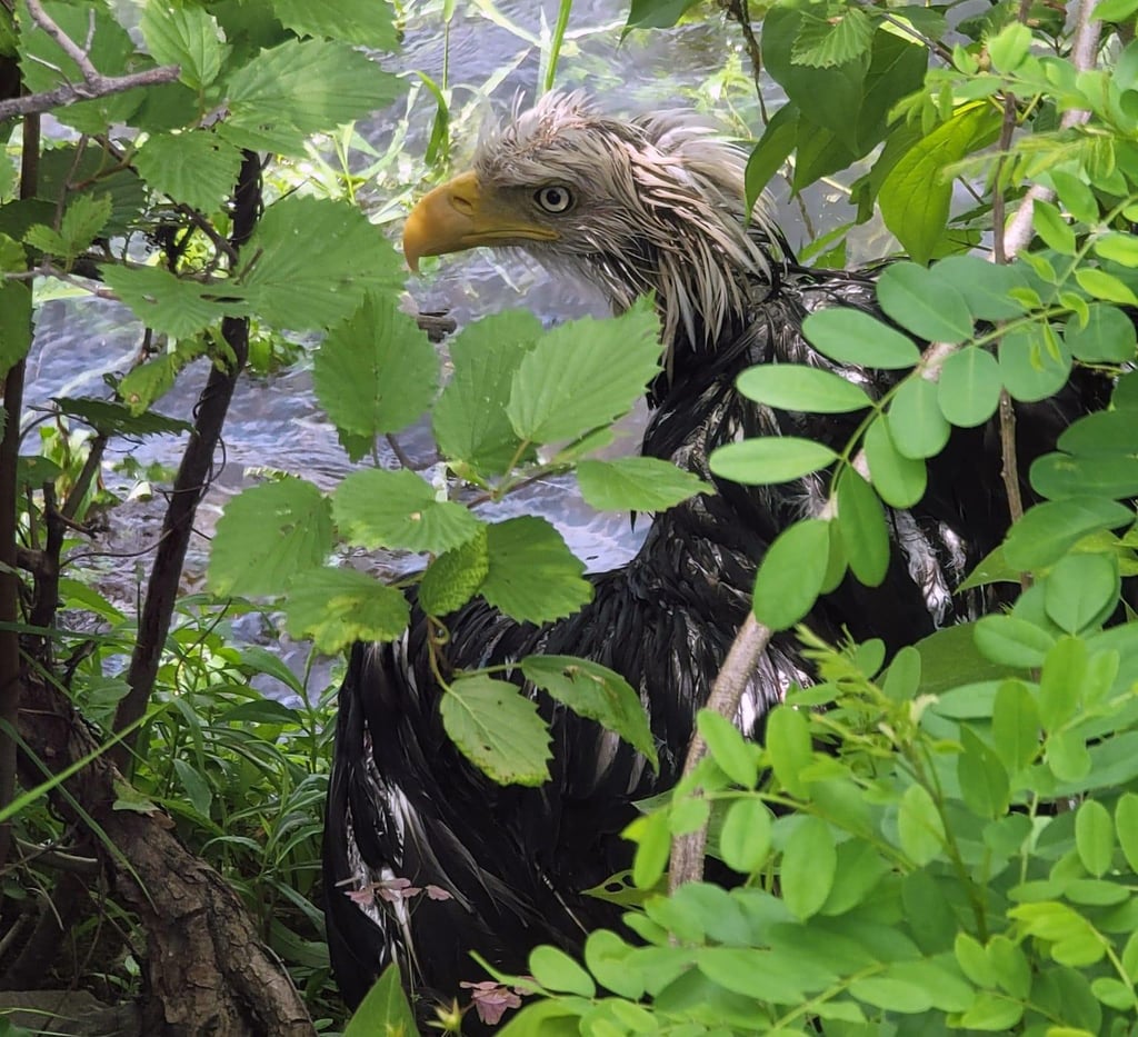 Responding officers located the eagle in a brush-covered area adjacent to the river bank, and requested assistance from Animal Control Officer Kayla Provencher, who responded.