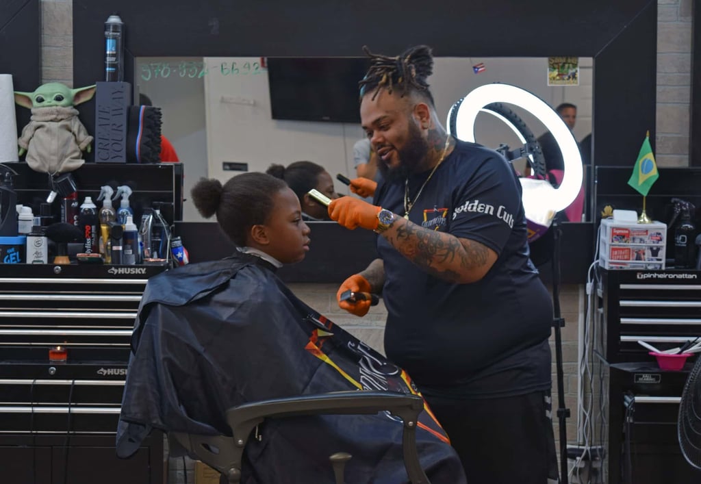 Golden Cuts is owned and operated by Lisie Reyes and her son Yaveht Adorno, who have been in business in Lowell since 2016. The family opened a new, larger barbershop at 210-212 Middlesex Street last year, and wanted to give back to the city that has enabled their business to grow.