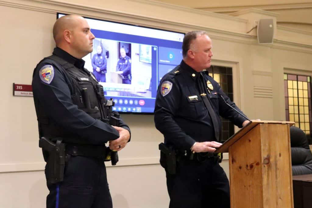 Officer Camara was recognized by Acting Chief Holmes at Tuesday’s Select Board meeting at Stoughton Town Hall, with other members of the department also in attendance.
