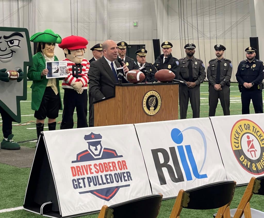RIPCA and law enforcement representatives joined the Rhode Island Interscholastic League (RIIL), Rhode Island Department of Transportation (RIDOT), and representatives from Bryant University Tuesday morning in Smithfield to place a special emphasis on observing the rules of the road and driving safely. Officials offered guidance on safe and responsible driving during the event to help prevent crashes this weekend.