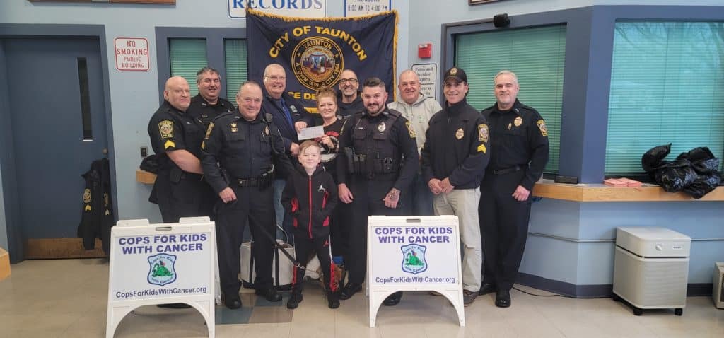 TAUNTON — Chief Edward J. Walsh is pleased to announce that a local family received a donation this week from the non-profit organization Cops for Kids with Cancer during a meet-and-greet at the Taunton Police Department.