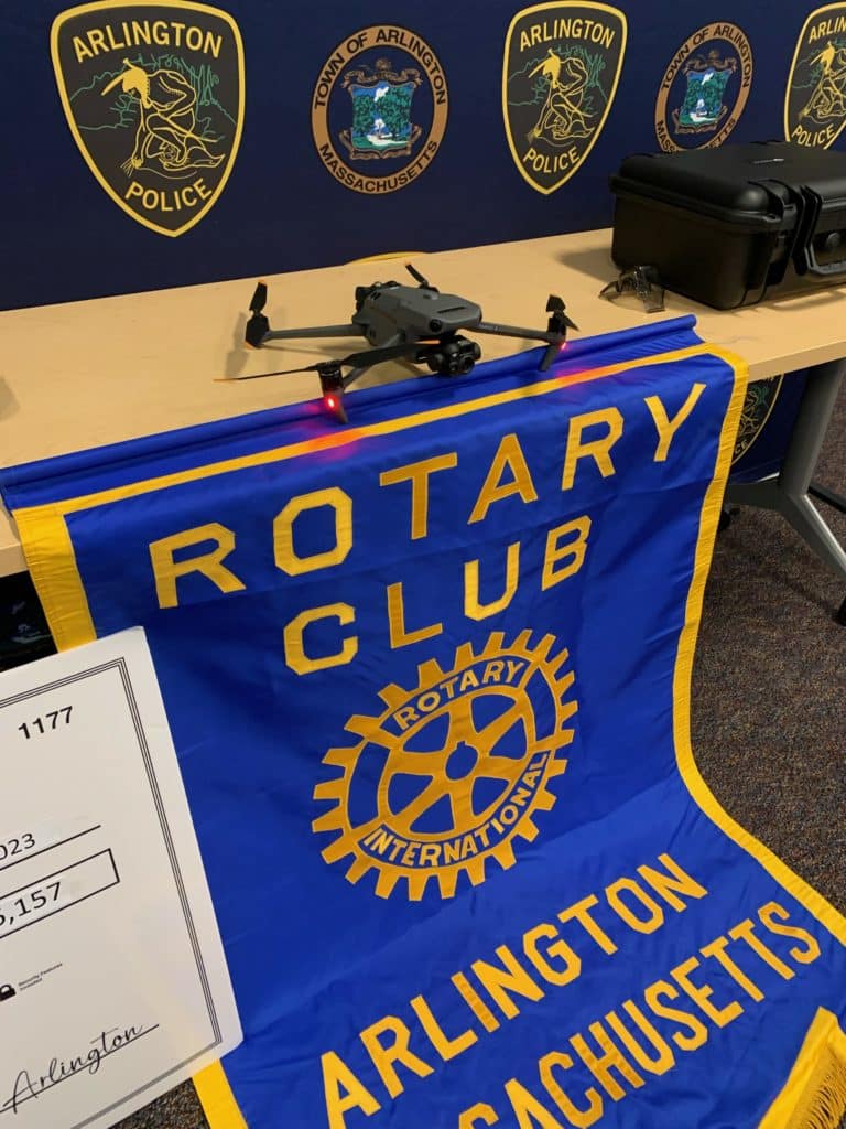 “We are grateful to President Buckley and the District 7930 Arlington MA Rotary Club for this donation to the department and to the town,” Chief Flaherty said. “Drones are a valuable asset to a police department for many purposes, and we will put the equipment to good use. The Arlington Police Department has had many valuable experiences with the Rotary Club, and their support of their community is inspiring and appreciated.”
