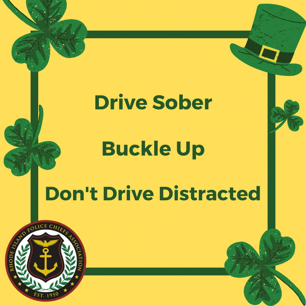PROVIDENCE — The Rhode Island Police Chiefs’ Association reports that law enforcement agencies across the state are increasing the number of patrols targeting impaired driving and seat belt use around the St. Patrick’s Day holiday, and reminds motorists of important safe driving tips from the National Highway Traffic Safety Administration (NHTSA).