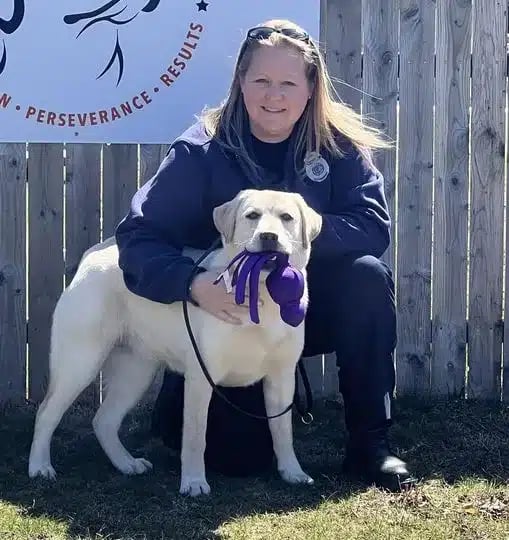 K-9 Morgan is a 6-month-old yellow lab who is assigned to School Resource Officer Tallitha Connor.