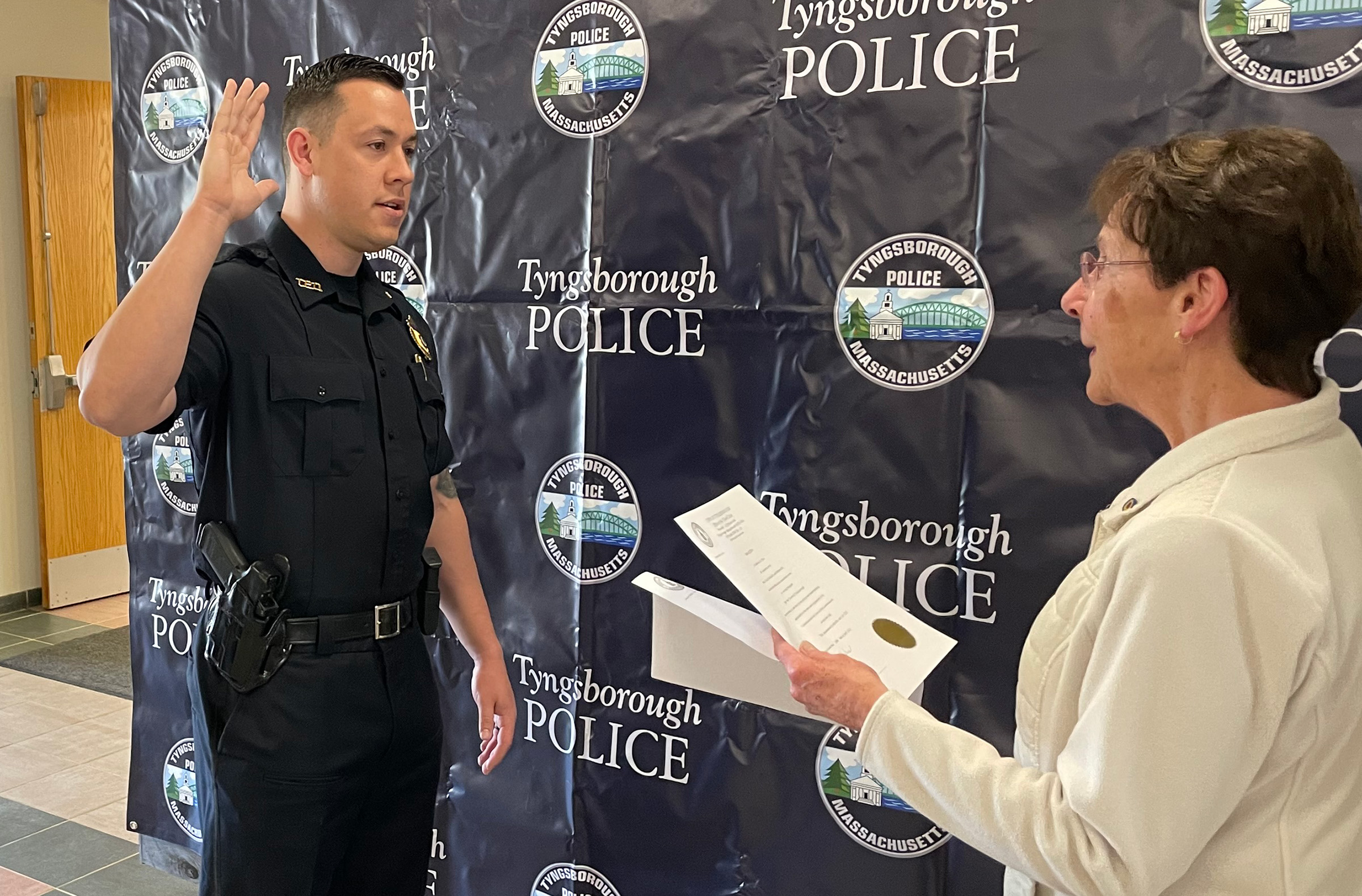 Officers Chuck Rubino and Nick Silva were both sworn in by Town Clerk Joanne Shifres at Tyngsborough Town Hall, and will assume their new duties immediately.