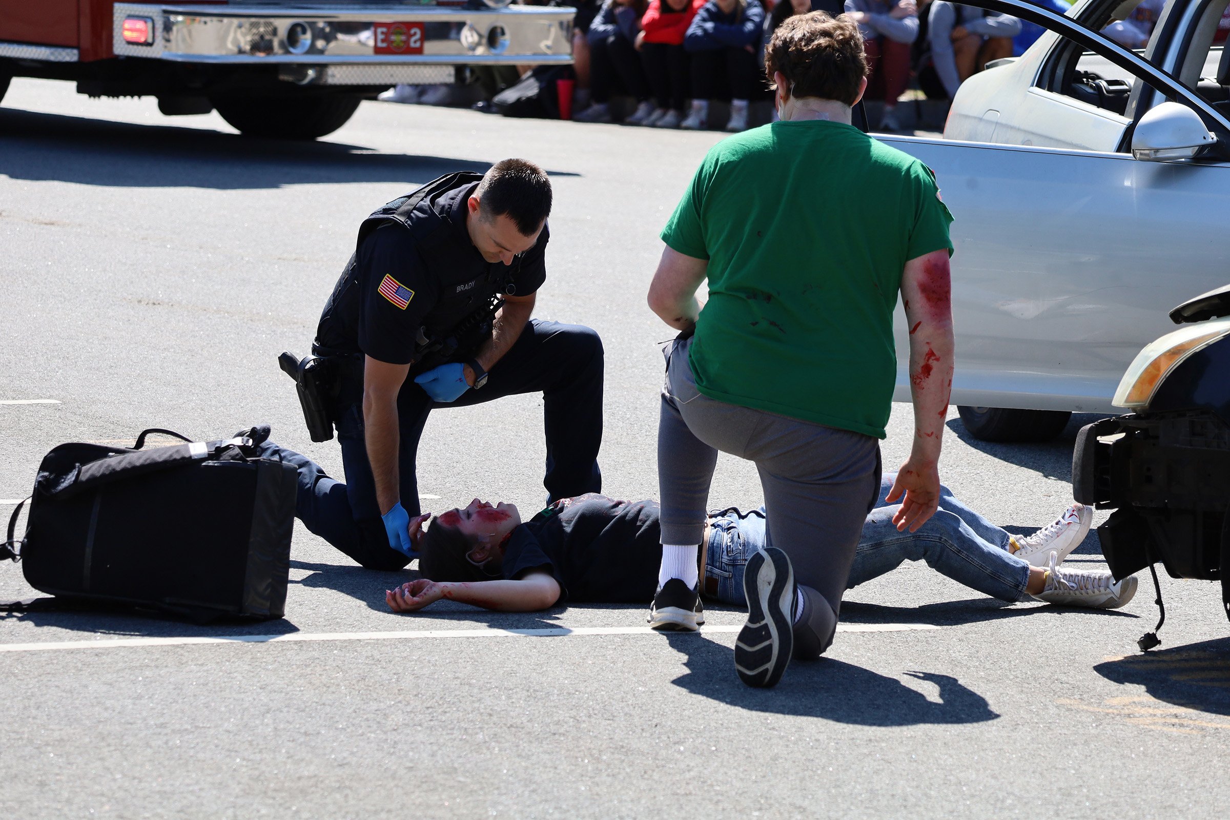The Mock Car Crash, which returned in 2022 following a two-year absence due to the Covid-19 outbreak, involved the Chelmsford Police and Fire departments, Dolan Funeral Home as well as PrideStar EMS.