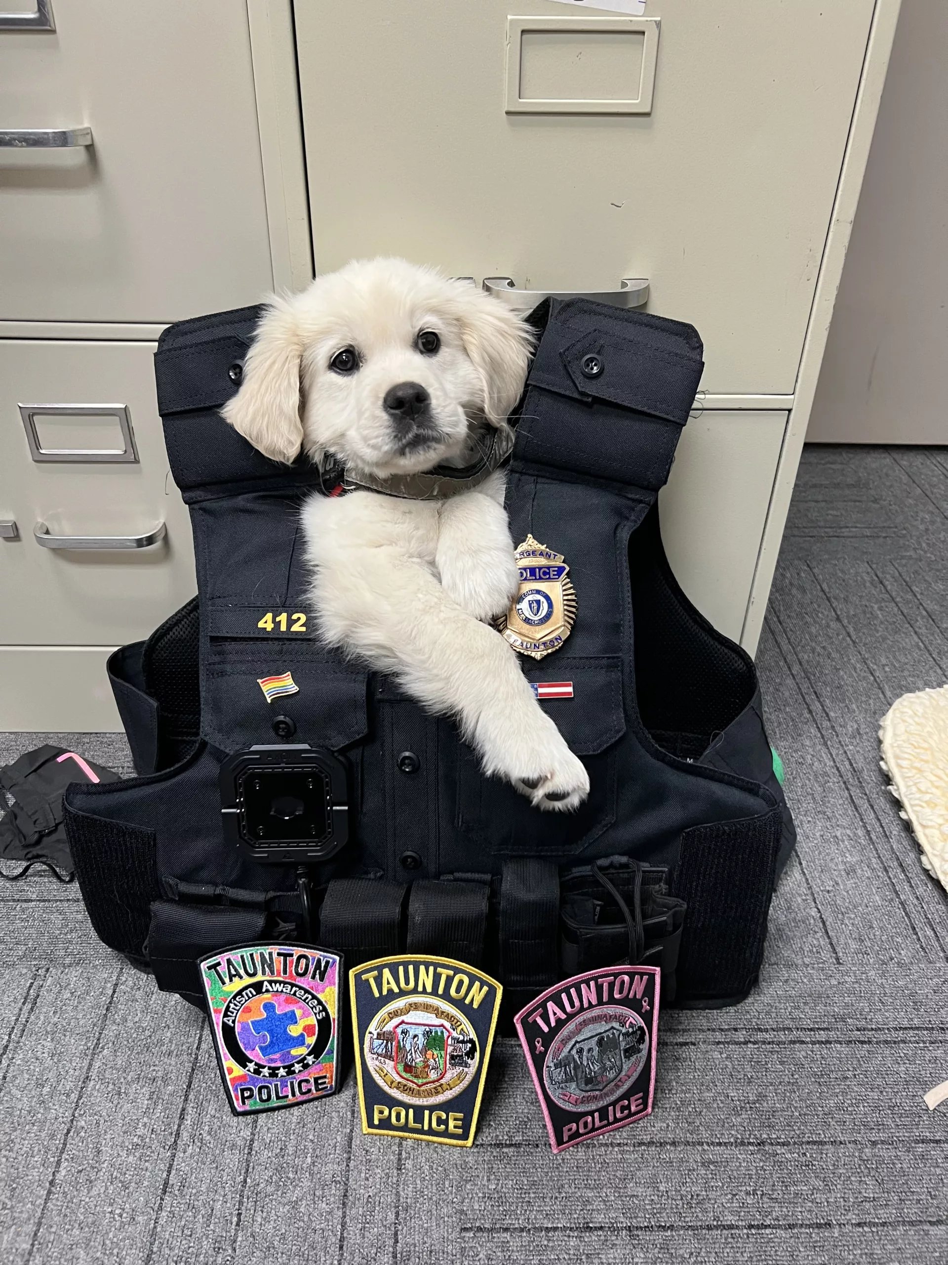 TAUNTON – Chief Edward J. Walsh is pleased to introduce the department’s newest four-legged employee — Maggie the Comfort Dog.