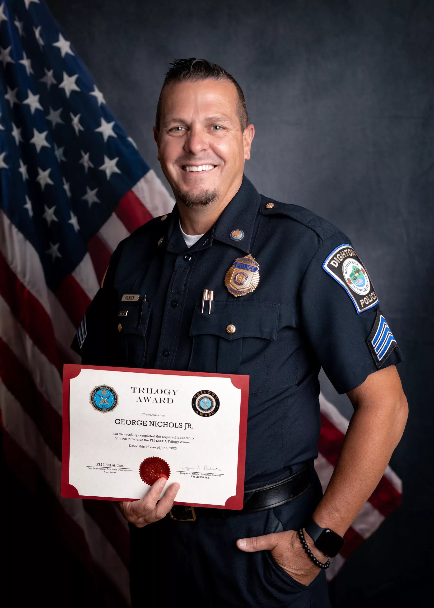 DIGHTON — Chief Shawn Cronin, on behalf of the Dighton Police Department, would like to congratulate Sgt. George Nichols for earning the FBI-LEEDA Trilogy Award after successfully completing three advanced law enforcement training courses this month.