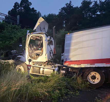 The Department of Environmental Protection (DEP) assisted at the scene as the tractor-trailer leaked an estimated 50 gallons of diesel fuel and eight gallons of engine oil as a result of the crash.