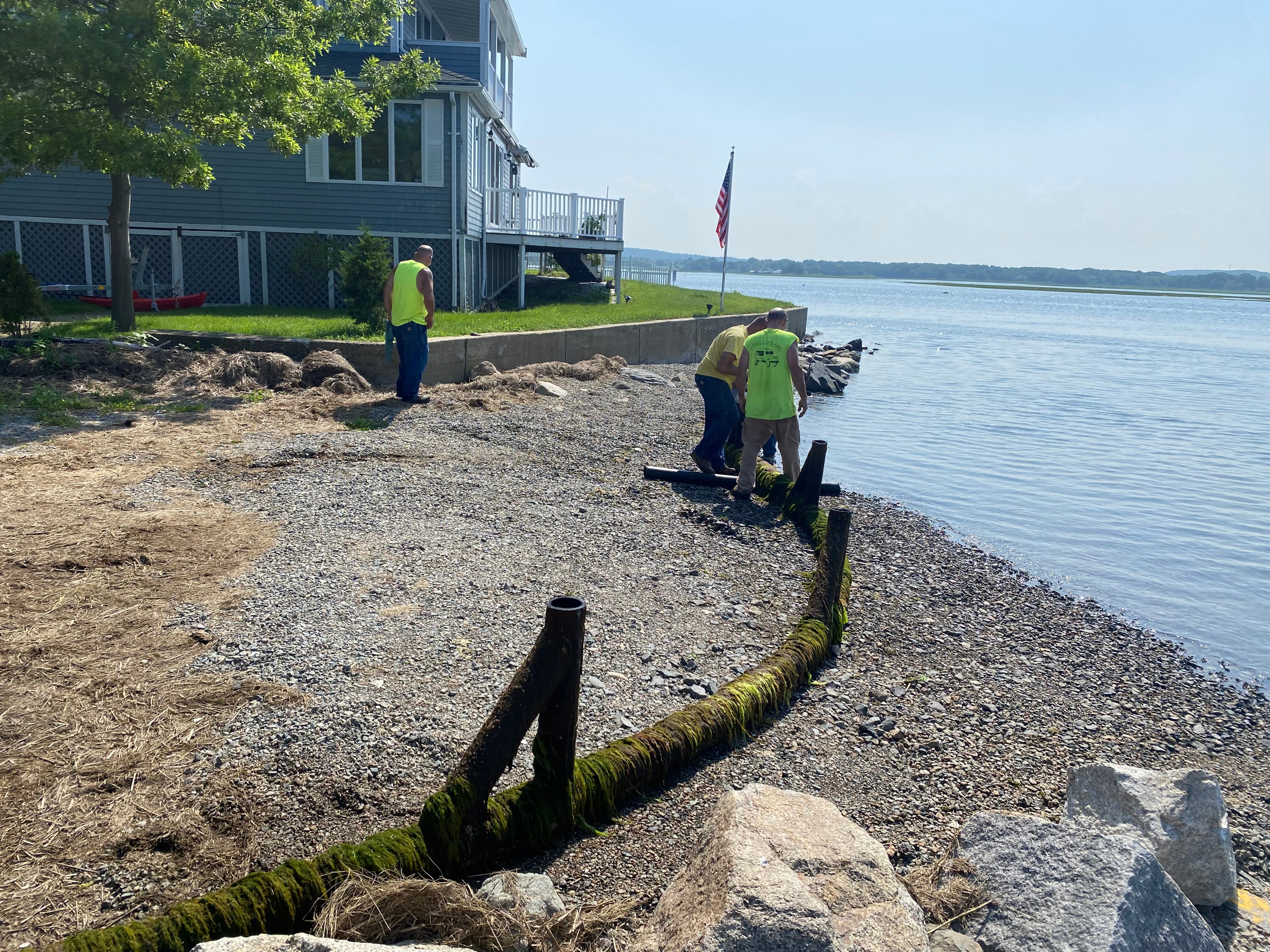 To minimize the danger to boaters and local moorings, Ipswich Marine Patrol safely towed the PVC type material to Eagle Hill Public Landing where Ipswich Department of Public Works will dispose of the material accordingly.