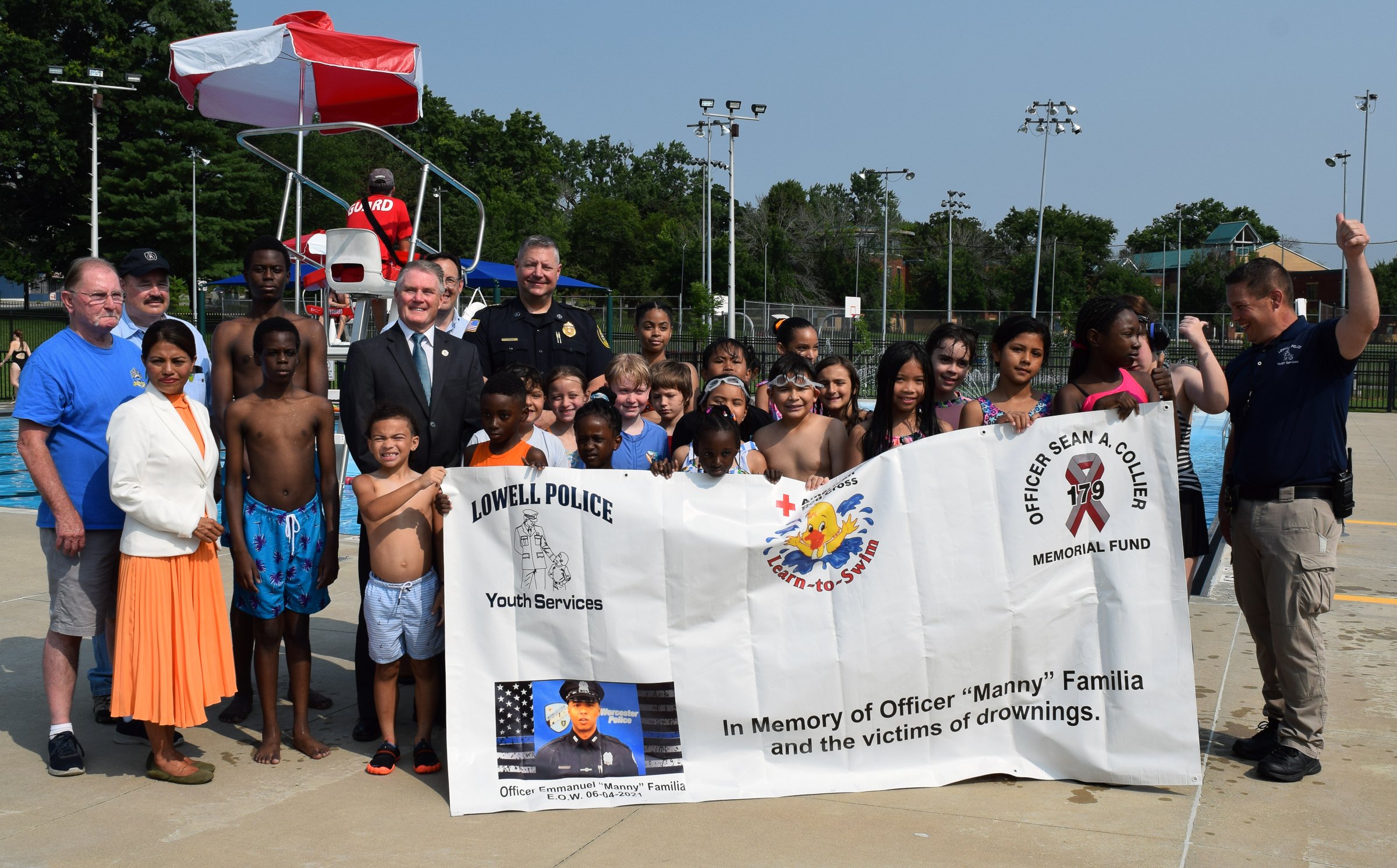 “We have experienced two horrible tragedies in this community in the past two years, and we are committed to helping young people in this community learn to swim while also building relationships,” said Superintendent Hudon. “Much like Officer Sean Collier did when he was working for MIT Police, the Lowell Police Department believes firmly in establishing relationships with young people outside of our traditional law enforcement duties, and programs like this are key to our efforts. We are extremely grateful to the Collier Fund for their continuing and growing support.”
