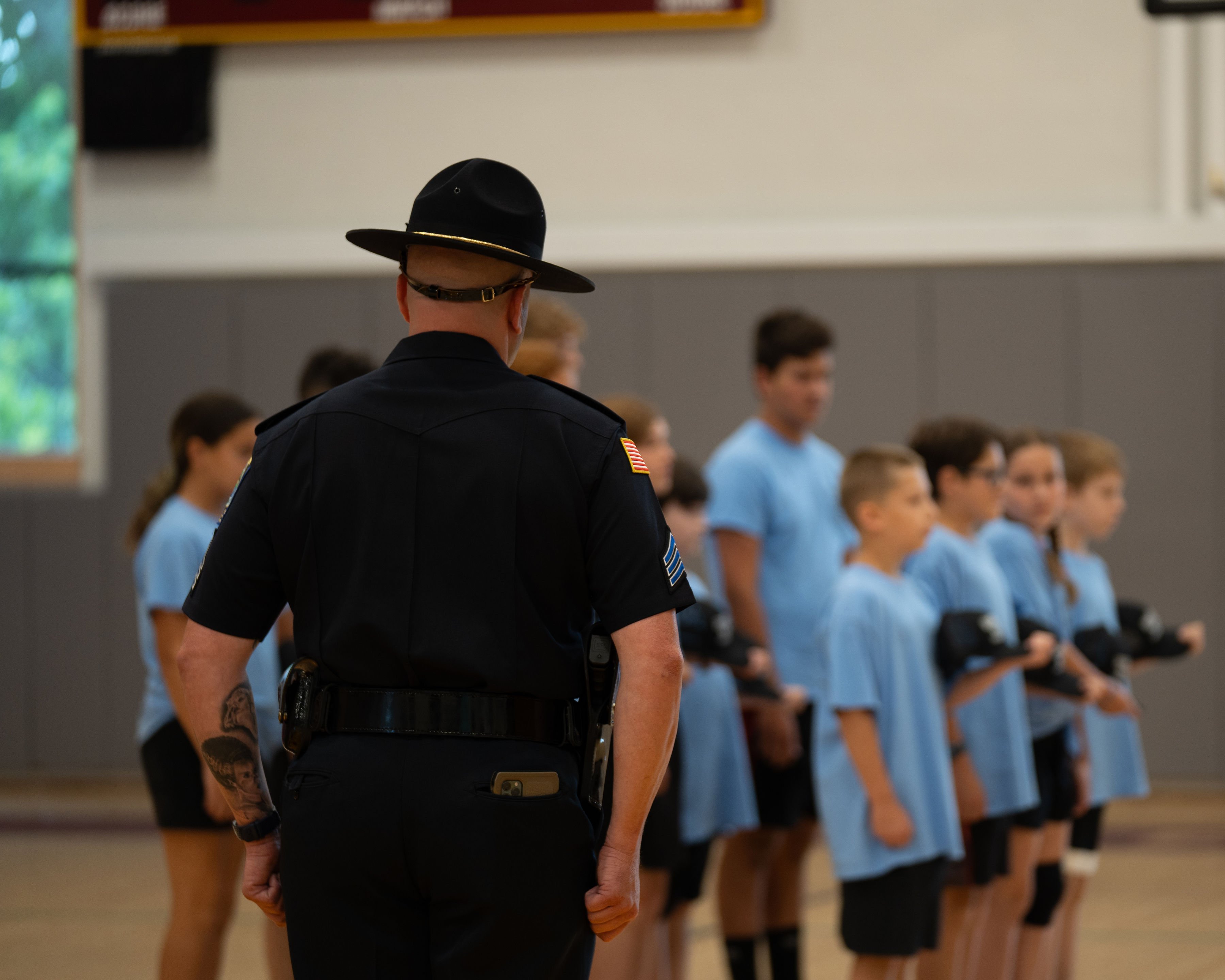 This year’s police academy began with a welcome from Acting Chief Nichols, School Resource Officers Alyssa Bennett and Stephen Hathaway, and all members of the department. After introductions, students participated in their first drill, toured the station and cruisers, and participated in physical training.