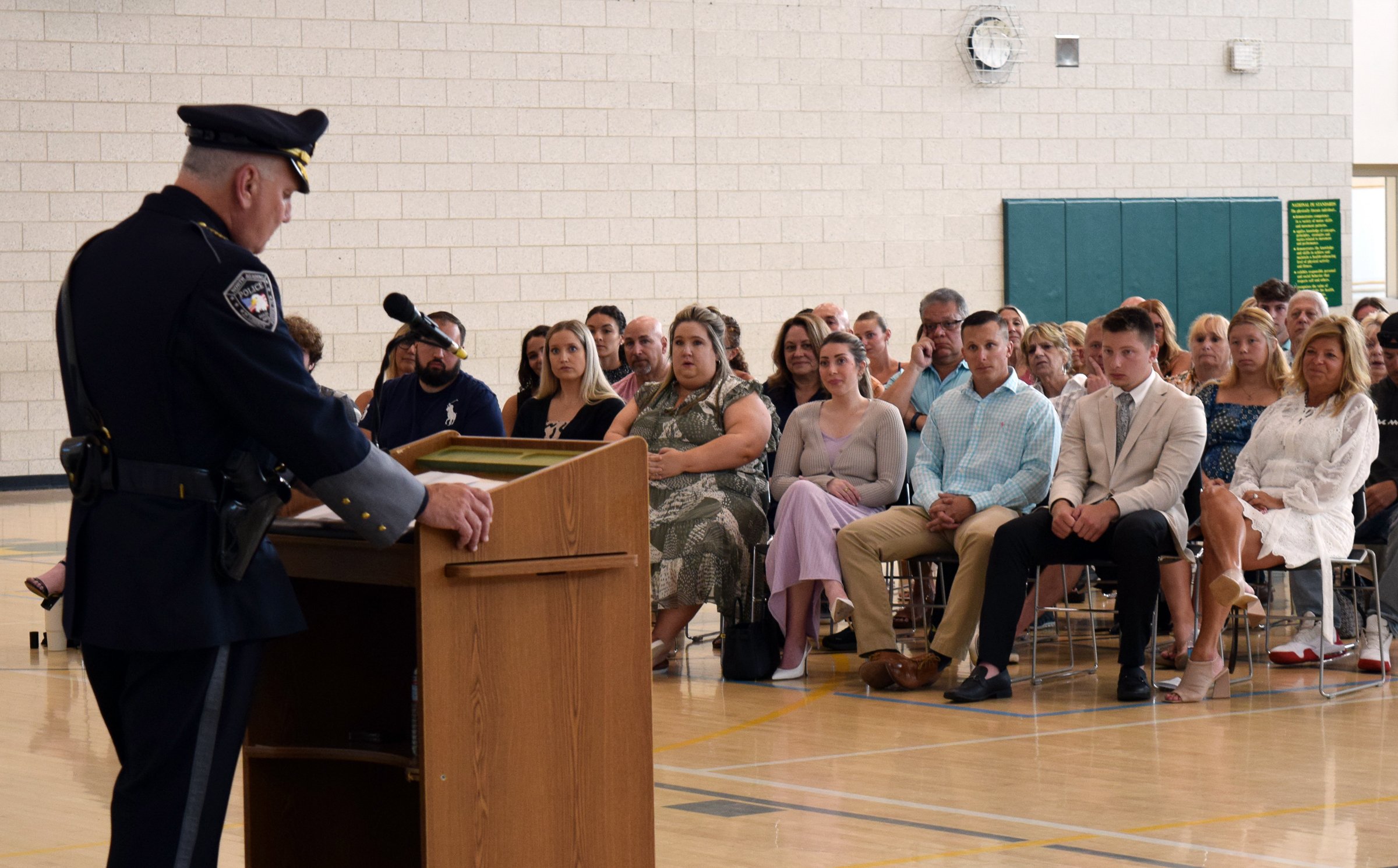 Chief Zimmerman was sworn in during a ceremony at North Reading High School on Wednesday morning Aug. 2 with family, friends, police officers and members of the North Reading leadership, and members of the Statehouse delegation and Fire Department on hand.