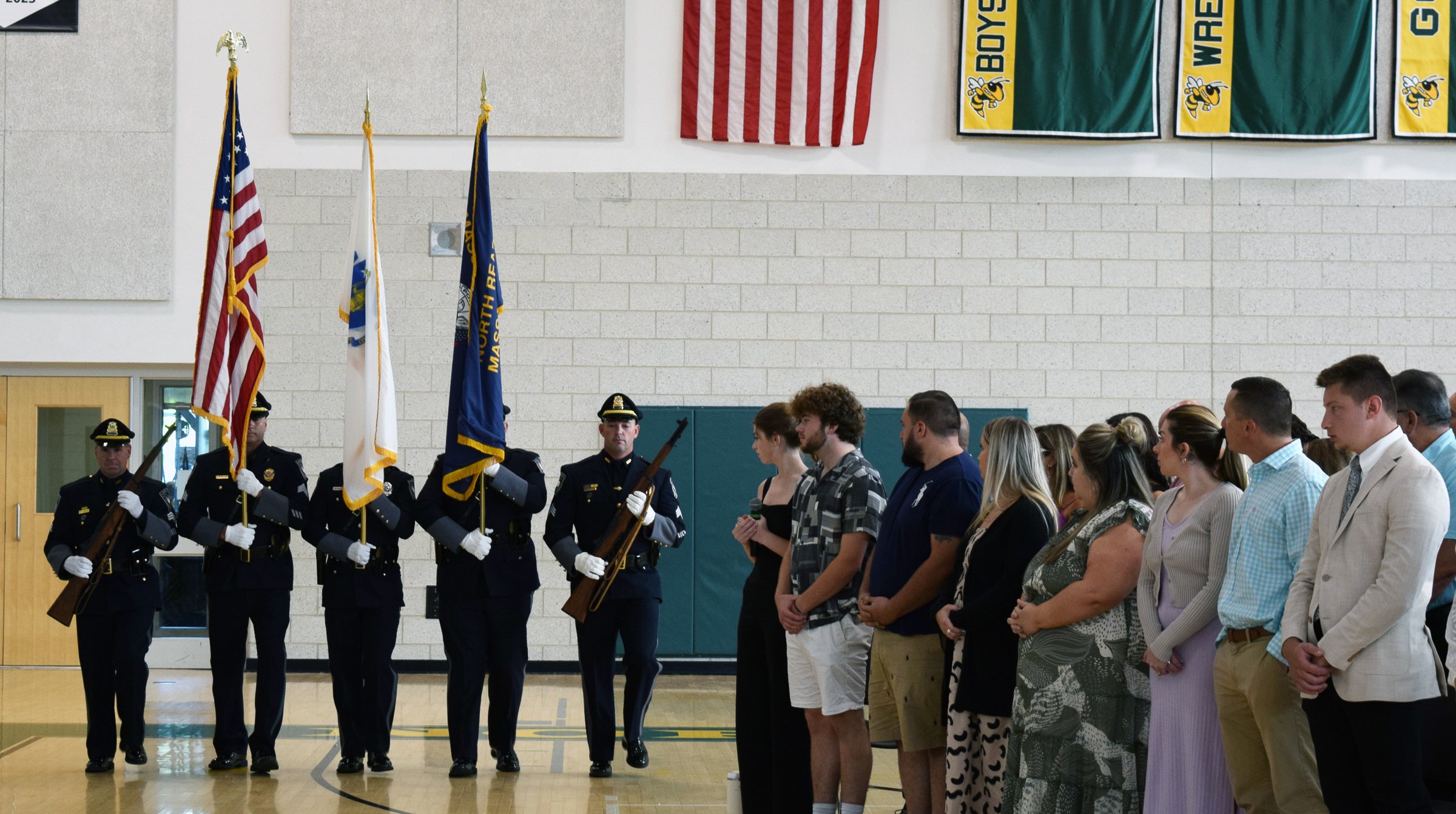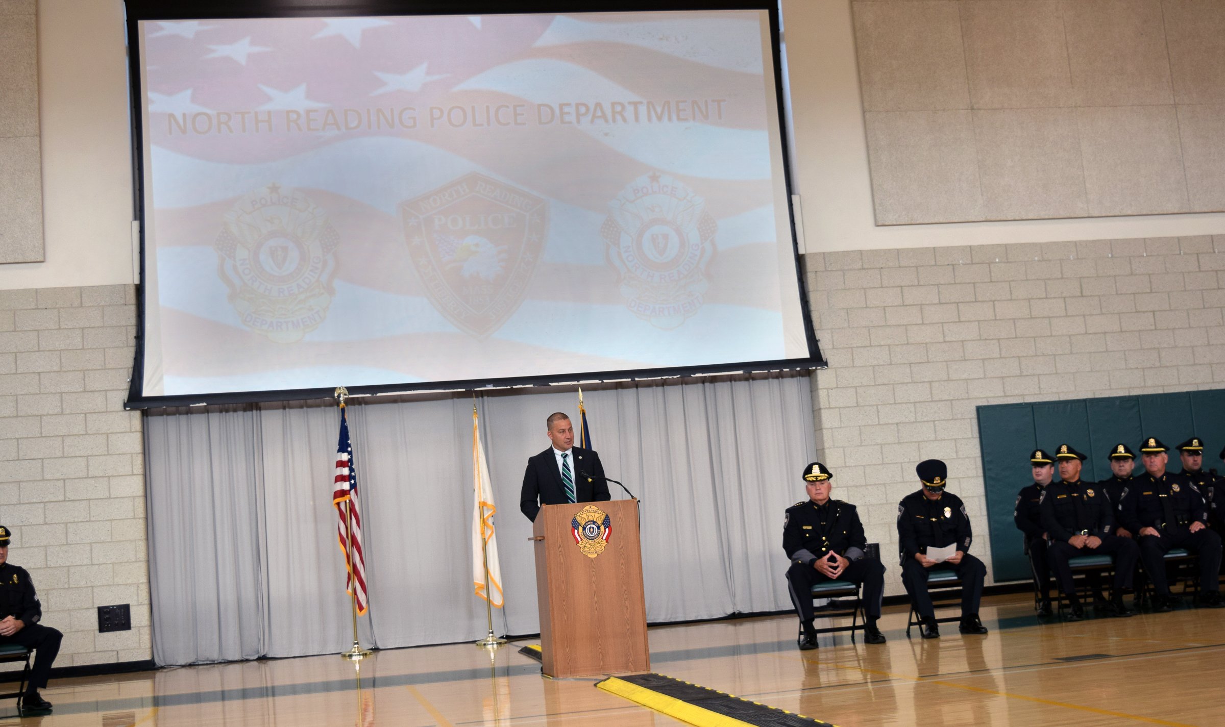 “Policing today is much more than simply investigating crimes and arresting those who do wrong. It is providing counseling to families. It’s getting someone facing mental illness or substance use the help they need, working out civil disputes between neighbors and knowing the resources available to help them. This new direction is the core of community policing and I’m very proud of how you have not only accepted these changes, but have truly embraced and excelled in them,” Chief Zimmerman said. “In these times we need to remember why we chose this profession and what it means to serve the residents of North Reading. We serve to protect the Constitution. We serve so that everyone has the protection of the law no matter what their current station in life is or where they’re from. Everyone, no matter where they are at this point in their life, has intrinsic value and the right to justice, and we must remember that. We serve to protect the fabric of this great community.”