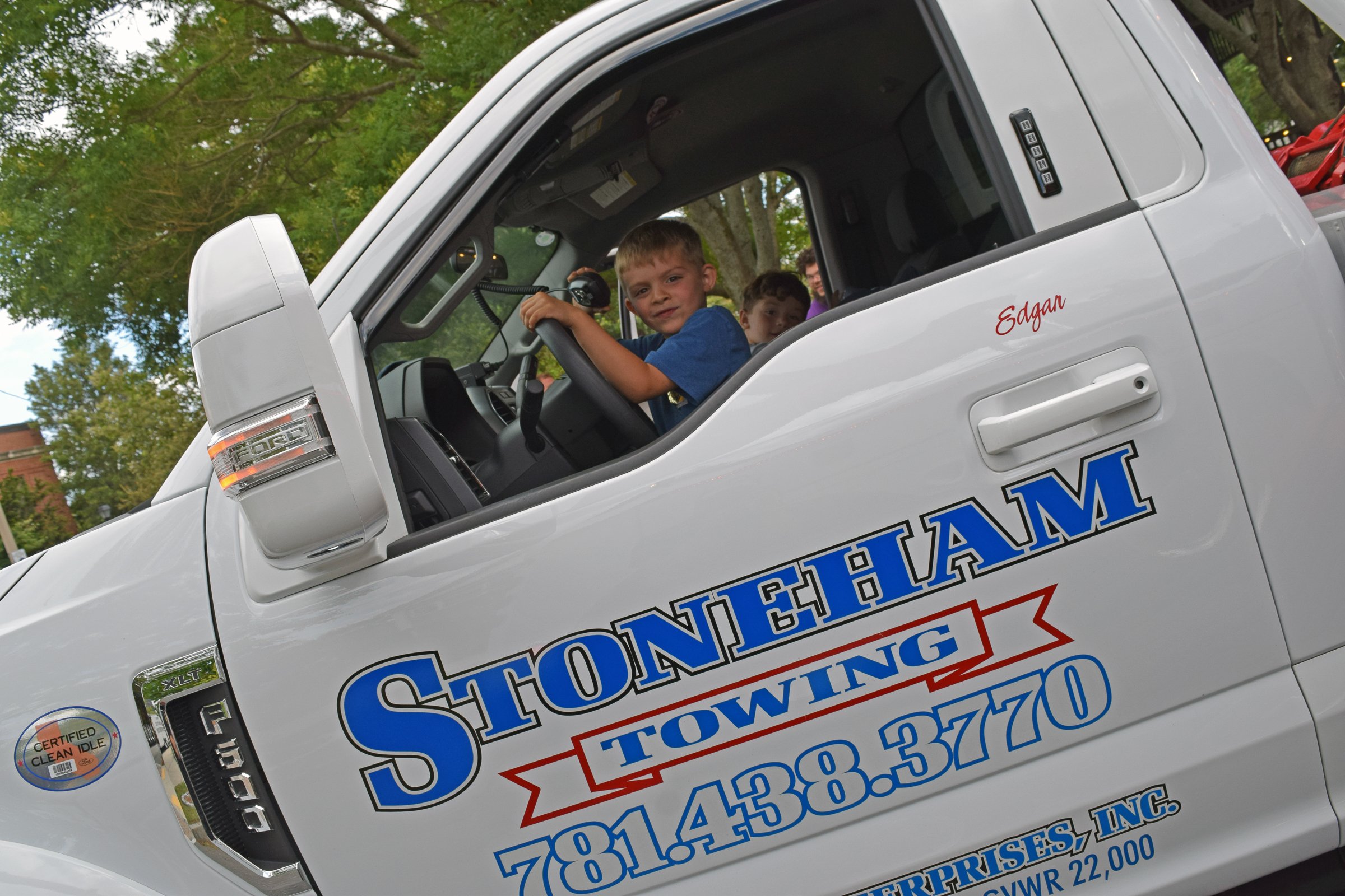 The Stoneham Police and Fire Departments, Cataldo Ambulance, and Stoneham Towing had vehicles on hand for children to explore, while popcorn, ice cream and drinks were available. The Stoneham Recreation Department provided free games and music, and there was also a bounce house on the Town Common.