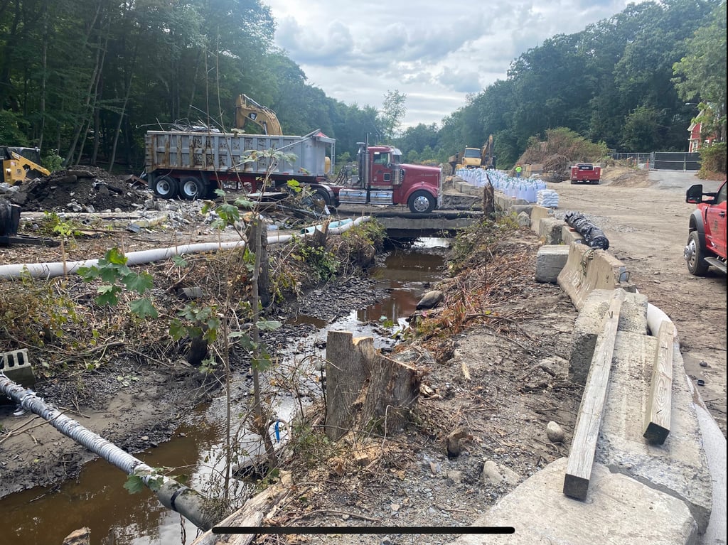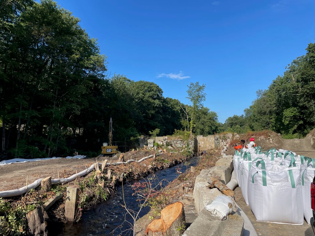 Contractors began clearing and preparing the site, at 53 River St. on Fort Pond Brook, on Aug. 11. The last building was demolished in mid-August. Temporary cofferdams were set up, diverting the channel and allowing the dam to be removed safely. Removal began on Tuesday, Aug. 29.