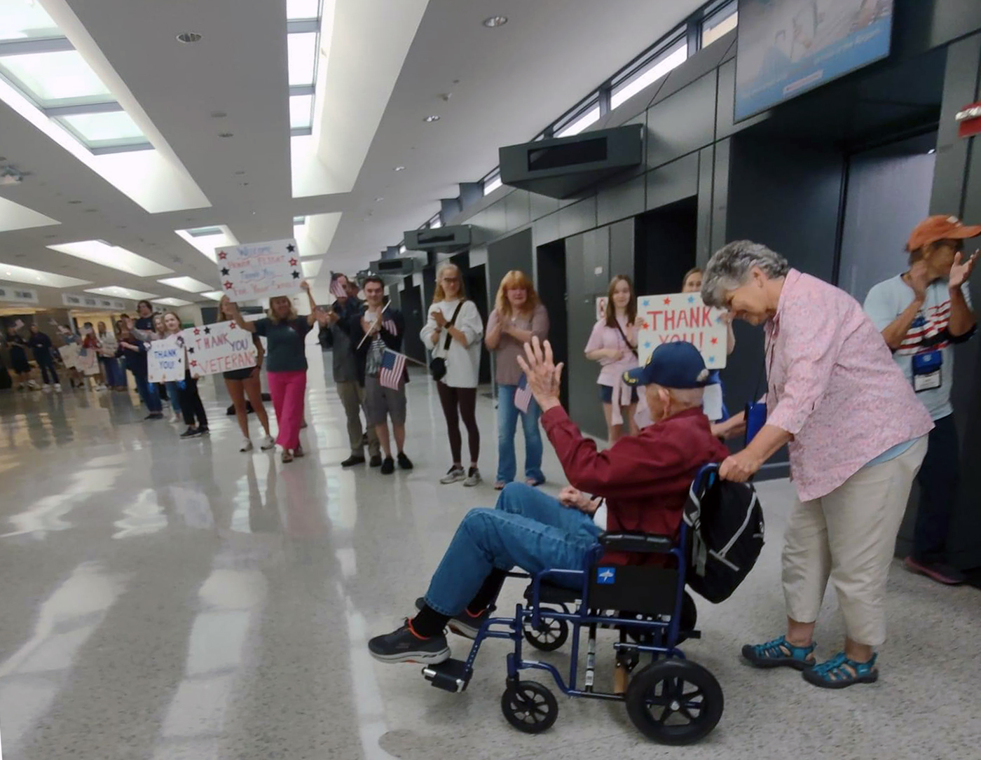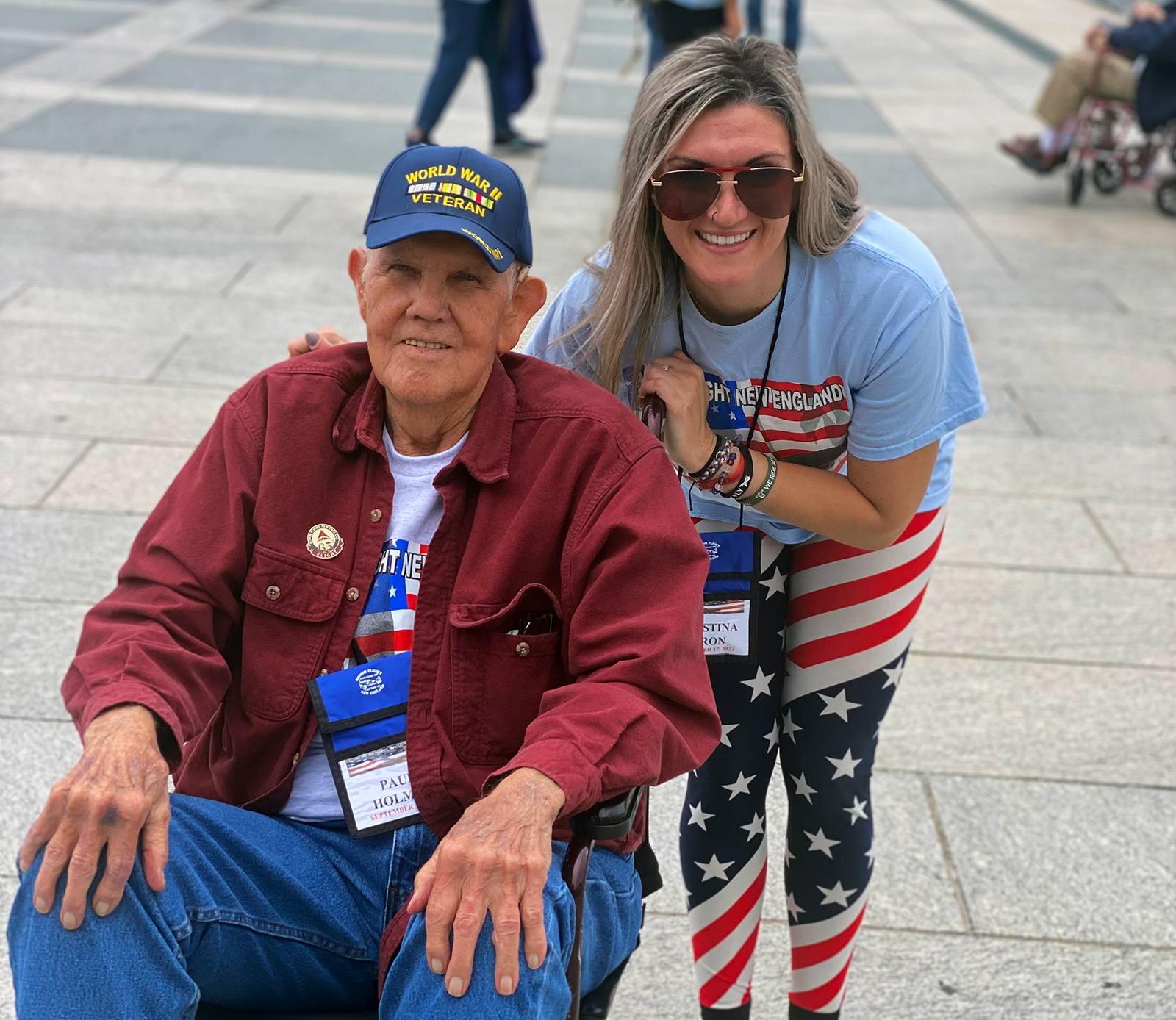 Holmes and other veterans were greeted at both Logan and Dulles airports, and once in Washington they were able to tour the nation’s monuments, courtesy of Honor Flight New England, a non-profit agency that takes aging veterans to tour the monuments free of charge.