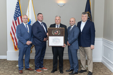 A ceremony was held by the Massachusetts Police Accreditation Commission on Wednesday, Oct. 4 at the Marlborough Country Club. Chief Pinard, Deputy Chief Jeff Patterson and Sgt. Marc Scola were in attendance to represent the department. Town Select Board Chair Gary Wilson was also in attendance.