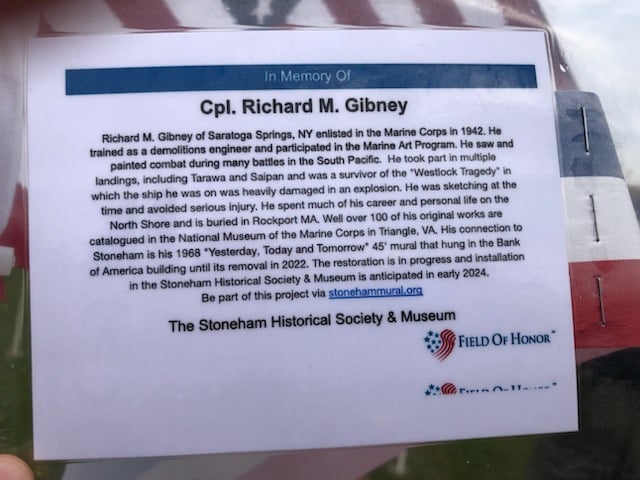 The SHSM has also sponsored a flag in Gibney’s honor as a part of Stoneham’s Field of Honor, available for public viewing through Sunday, Nov. 12.
