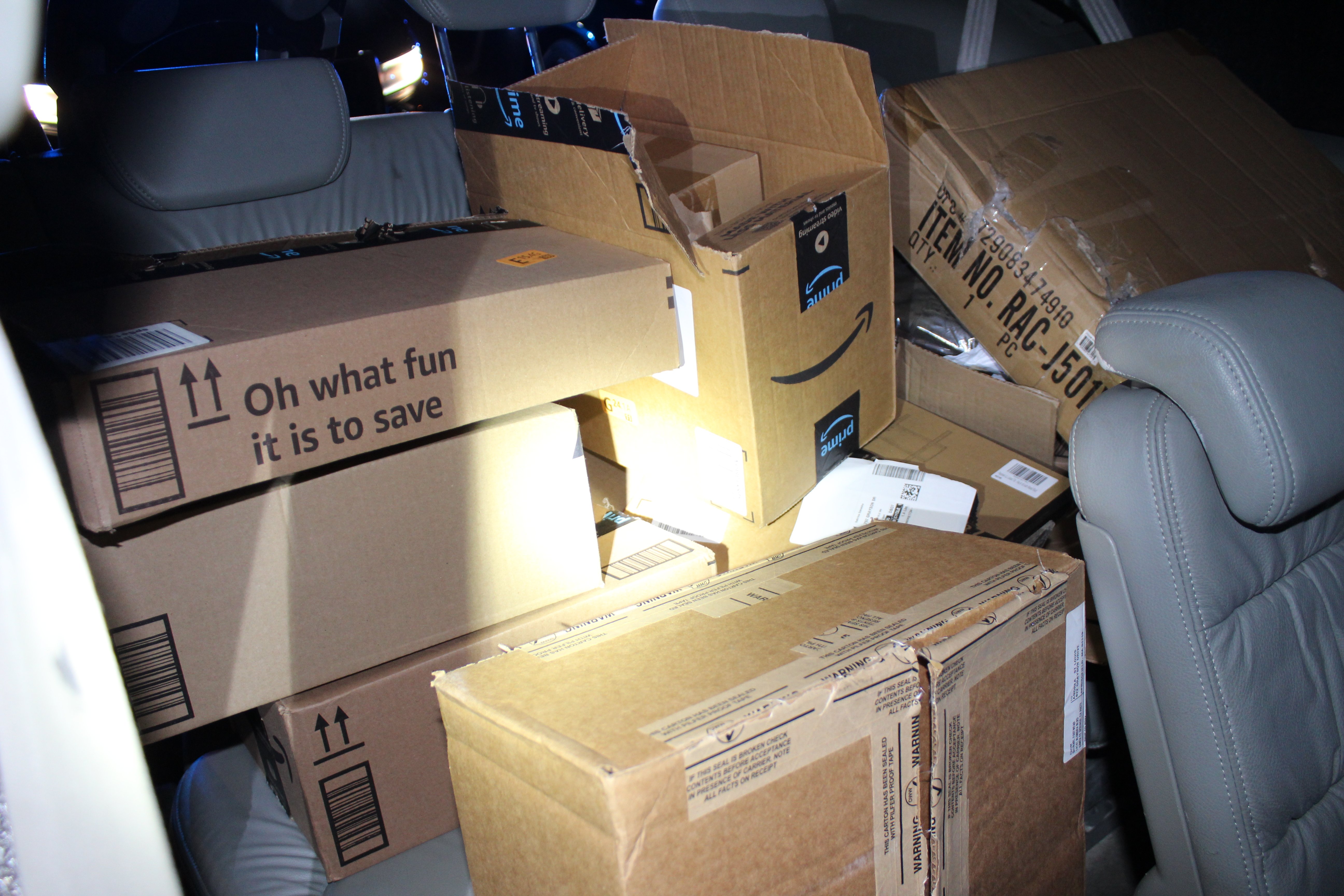 Through a subsequent search of the vehicle, packages that were not addressed to the occupants were found in the vehicle’s back seat and trunk. An airsoft pistol was also located in the vehicle.