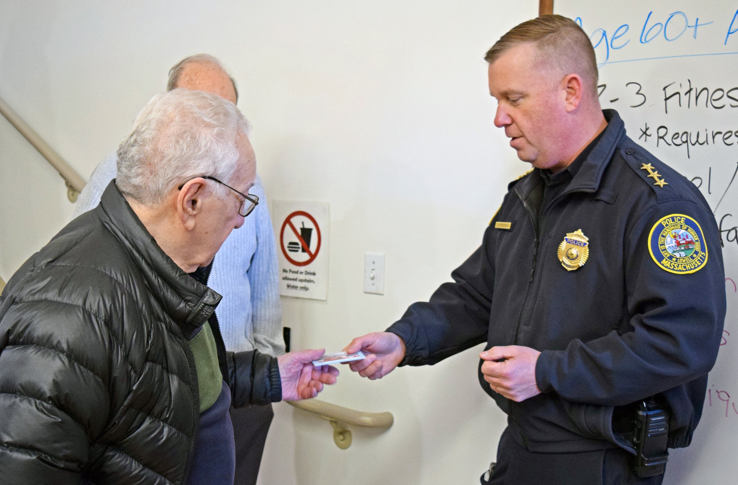 Lowell Police and the Officer Sean A. Collier Memorial Fund initially planned to giveaway just a few gift cards that were leftover from a Christmas party hosted at the Lowell Police Boxing Gym, which is sponsored by the fund, but then an anonymous donor to the Collier Fund provided another $2,000 to buy 40 more gift cards for the distribution.