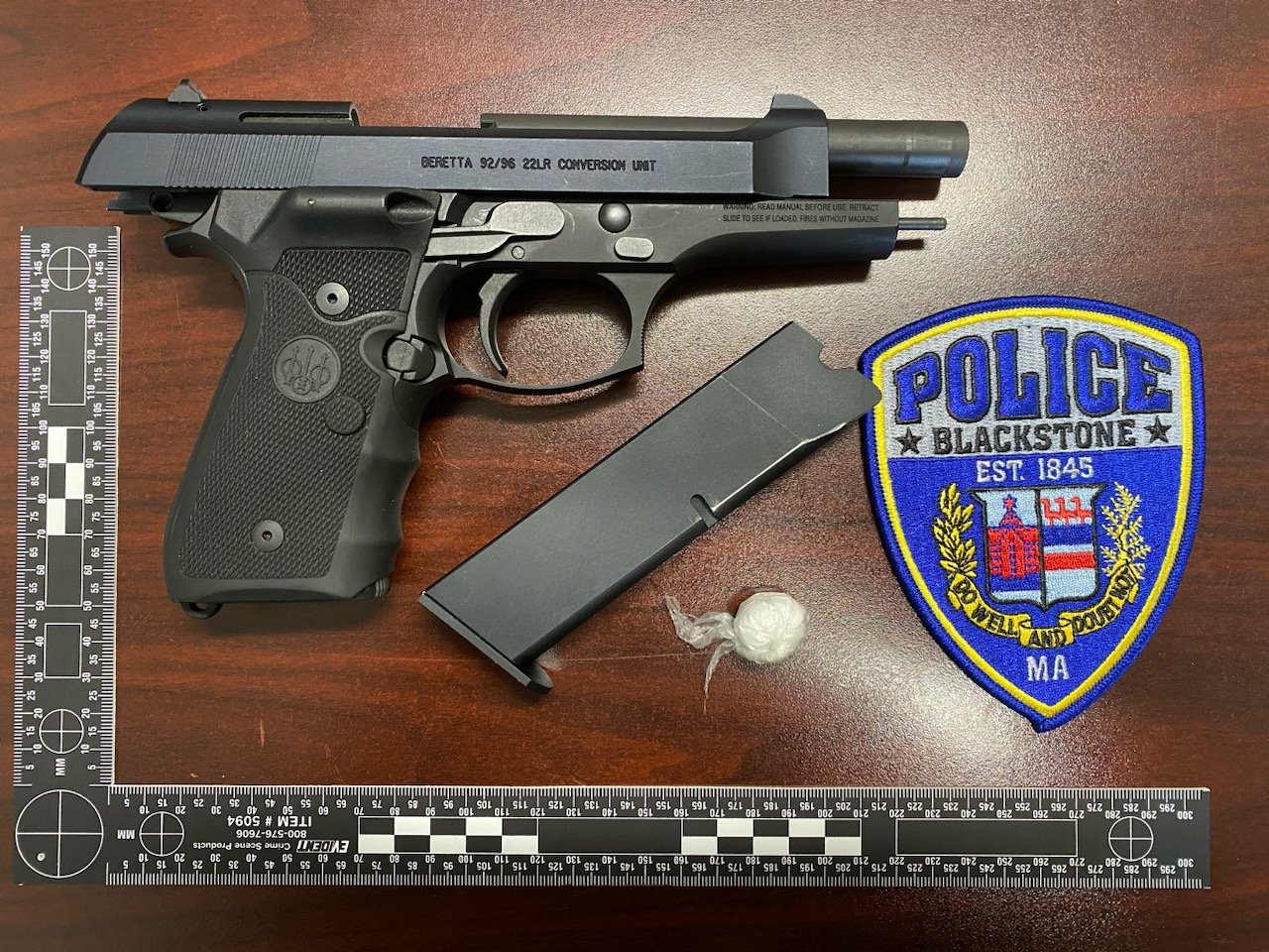 “This is a great case that highlights the many things Blackstone Police officers encounter on any given day,” said Chief Gilmore. “What started as a routine motor vehicle stop developed into multiple arrests, the seizure of narcotics, and most notably a dangerous firearm taken out of our community. Our officers never know what may happen during these routine stops, and their vigilance is commended.”