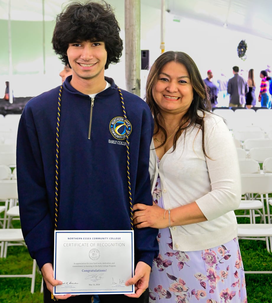 The ceremony included a welcome address by Aaron Altman, NECC’s Associate Dean of PK12 Partnerships; a speech by alumni speaker Osaym Omar, Promise Scholar, NECC Class of 2025, Haverhill High School Class of 2023; remarks courtesy of Dr. Paul Beaudin, NECC Provost of Academic & Student Affairs; and thoughts from faculty speaker Dawn Wheaton, Program Coordinator, Health Professions Faculty, and Faculty Advisor.
