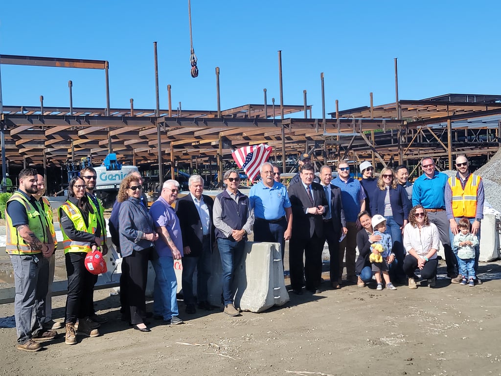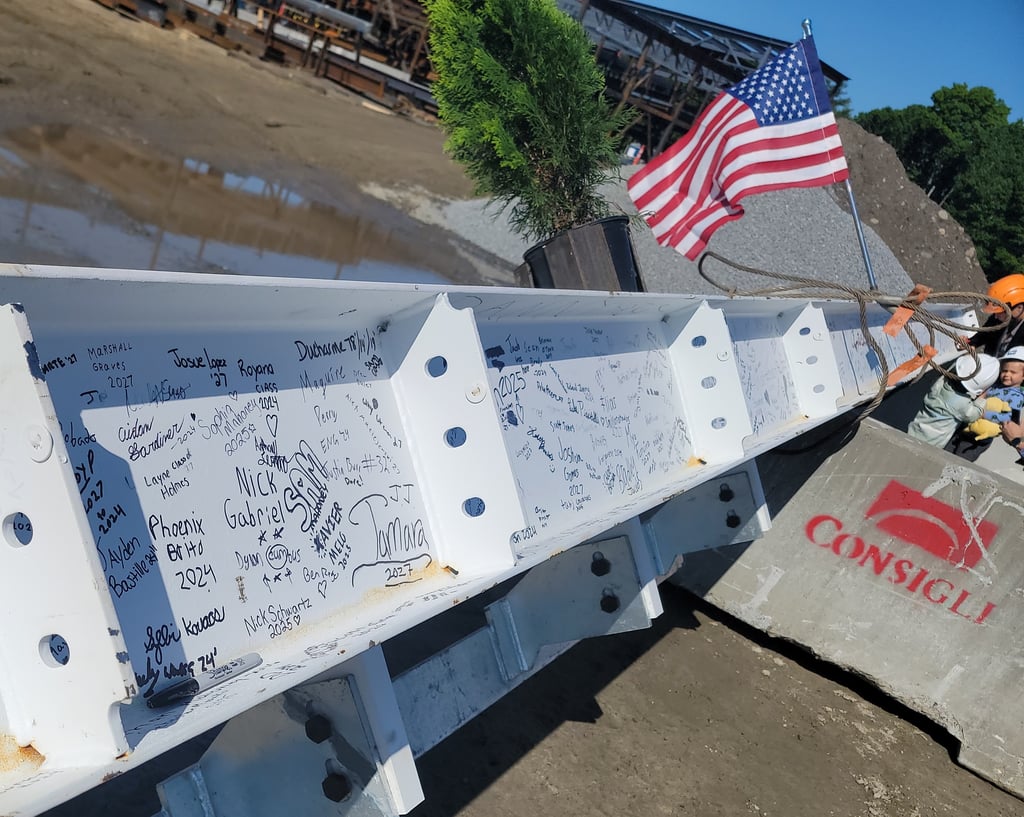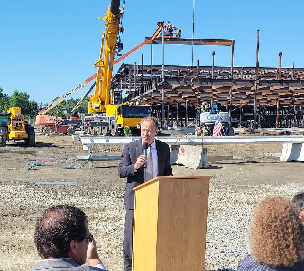 Magalhaes was joined on May 31 by state Sen. Marc Pacheco, state Rep. Carol Doherty, Massachusetts School Building Authority CEO Jim MacDonald, and a number of local leaders and project officials for a “topping off” ceremony marking the final pieces of the new school’s steel superstructure being hoisted into place.