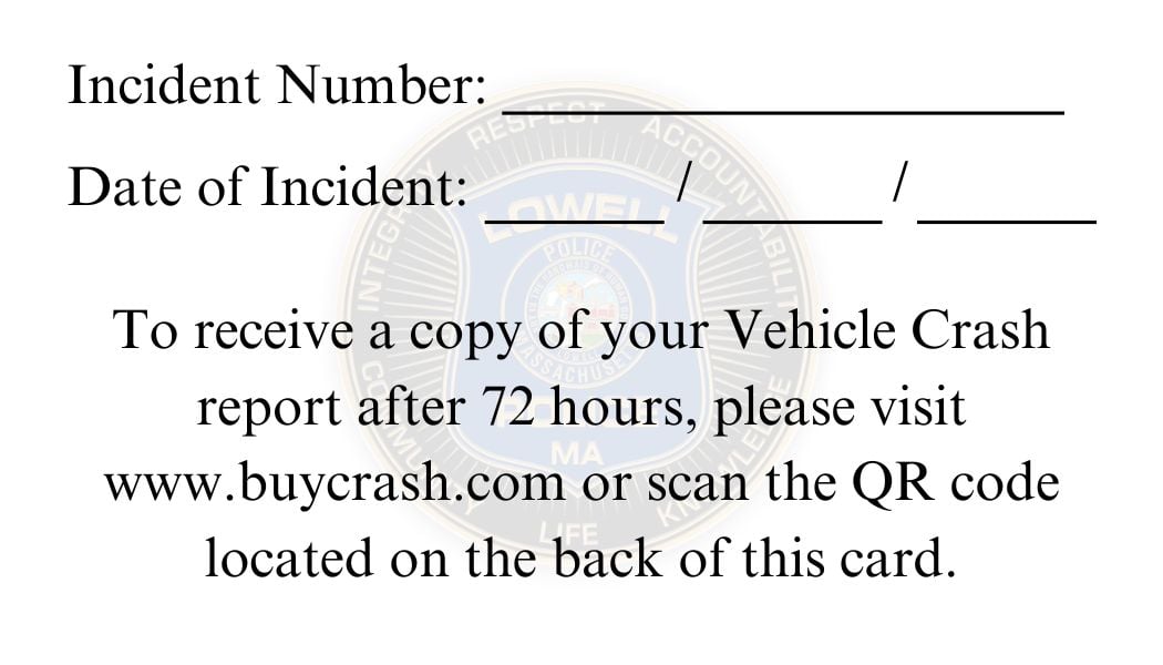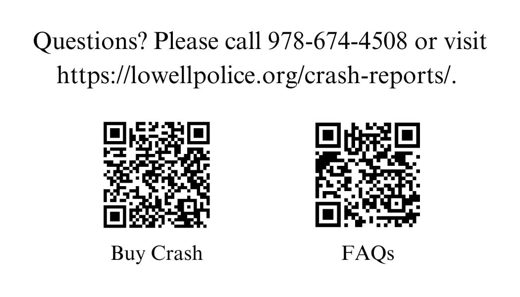 For more information, call 978-674-4508 or visit: https://lowellpolice.org/crash-reports/.
