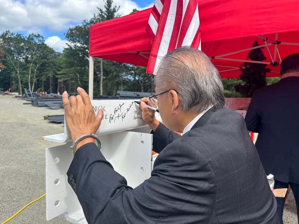 “The placement of this beam marks an important milestone for the construction of this state-of-the-art school, and brings us closer to the day when the doors of opportunity open for new generations of students,” said State Sen. Bruce Tarr.