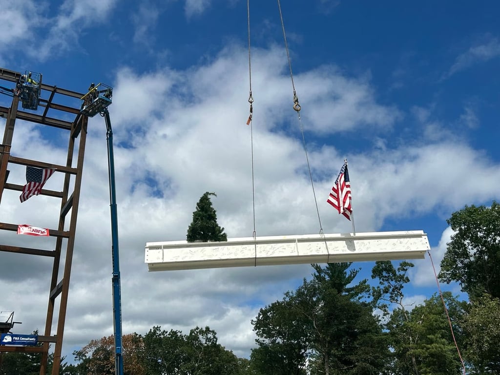 WAKEFIELD — Northeast Metropolitan Regional Vocational School began the process of building a new high school facility just over a year ago. On Aug. 29, the structure’s final beam was raised and put into place, celebrating the project’s significant progress to date.