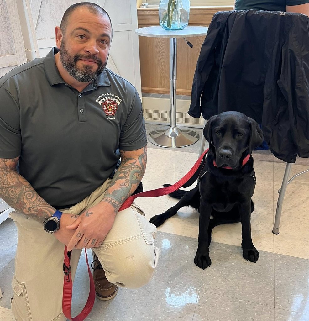 Horvath, a Coast Guard veteran who’s been Plymouth’s Emergency Management Director for 3 ½ years, first proposed the acquisition of a comfort dog in May 2024. With the blessing of Chief Foley and $5,000 in grant funding from the DA’s office to cover medical expenses and food costs, Horvath reached out to Puppies Behind Bars, becoming the first representative of a fire department served by the nonprofit in its nearly 30 years of existence.