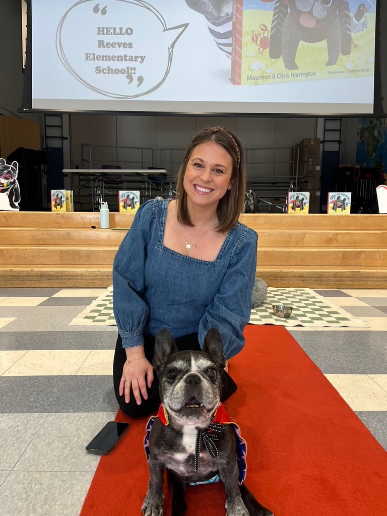 WOBURN — Principal Matthew Comenitz is pleased to share that Reeves Elementary School students were visited by Massachusetts native and author Maureen Harrington and her dog Ivy, the main character of her book “Ivy the Very Determined Dog.”
