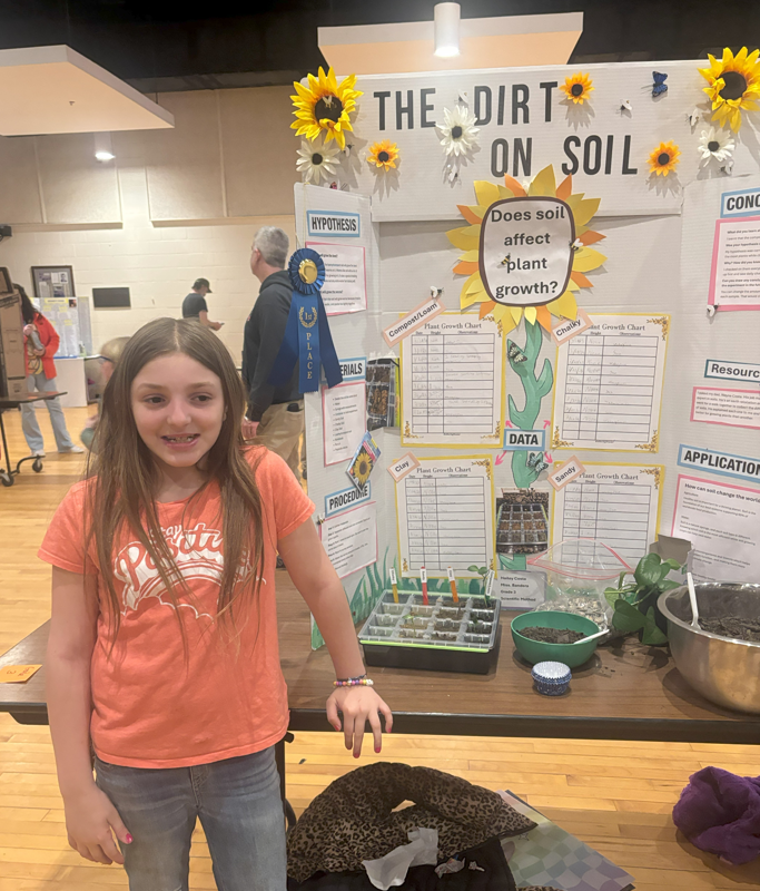 - Third-grade student Hailey Costa won a blue ribbon for her project, “The Dirt on Soil.”