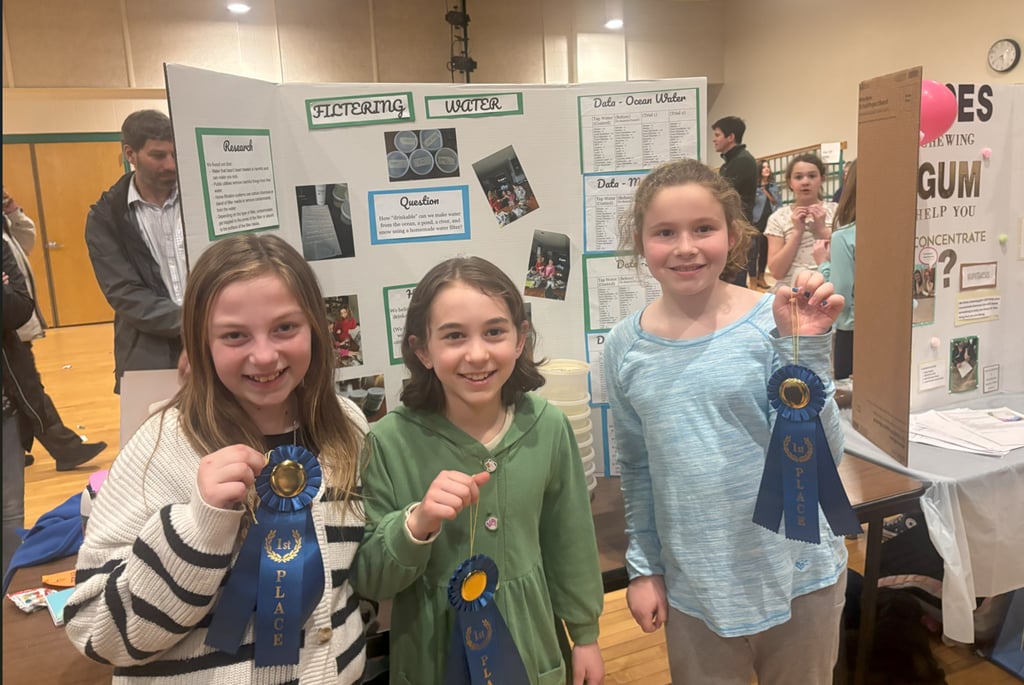 - Fourth-grade students Amelia Whinnem, Zoe Callina, and Neriah Andrewski won a blue ribbon for their project, “Filtering Water.”